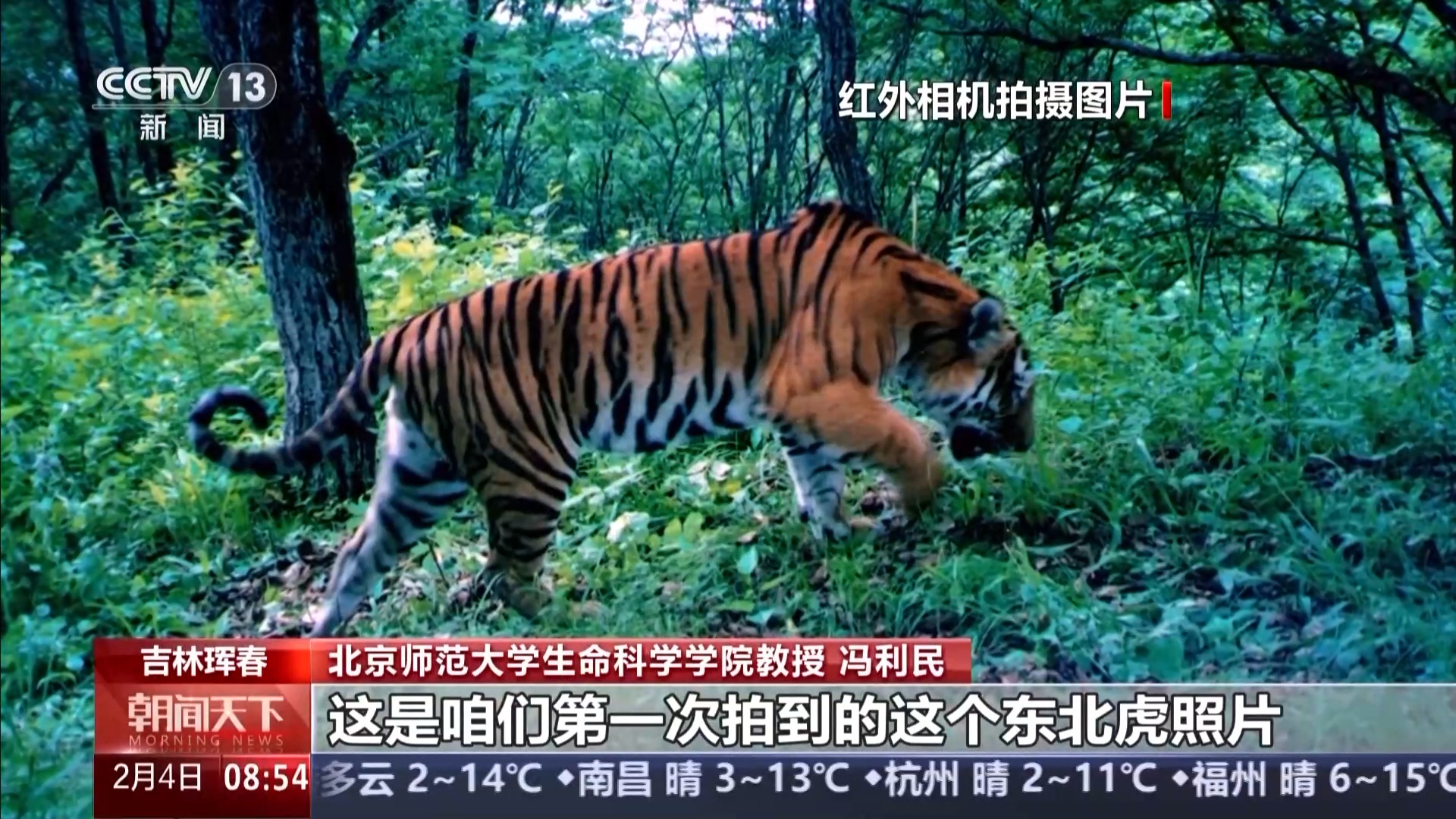 北京师范大学生命科学学院教授 冯利民:这只雌虎在2011年到2013年期间在边境其实就养活了一胎幼崽。养活之后它把中国边境这个区域的这个领地让给了其中的一个女儿,然后它自己就往西跨过了331国道,到咱们更西边的这片森林定居下来,并且繁育了一胎四只幼崽。这个是咱们中国真正的第一只完全在中国定居的雌虎。这个视频也是世界上第一次在野外发现野生东北虎一胎生四个幼崽的视频,但是它这四只幼崽非常不幸没有存活。冯利民团队经研究分析,认为当时的东北虎、东北豹在国内已经具有了恢复的可能和趋势,与此同时,虎豹也面临着猎物稀缺、人为干扰大、繁殖率低、幼崽成活率低等多重生存难题,其首要原因,是没有足够适宜的栖息地,和完整良好的森林来支撑虎豹种群的增长。而虎豹种群的恢复当时来看只有一个办法,就是将周边连续广阔的优质森林全部纳入保护。